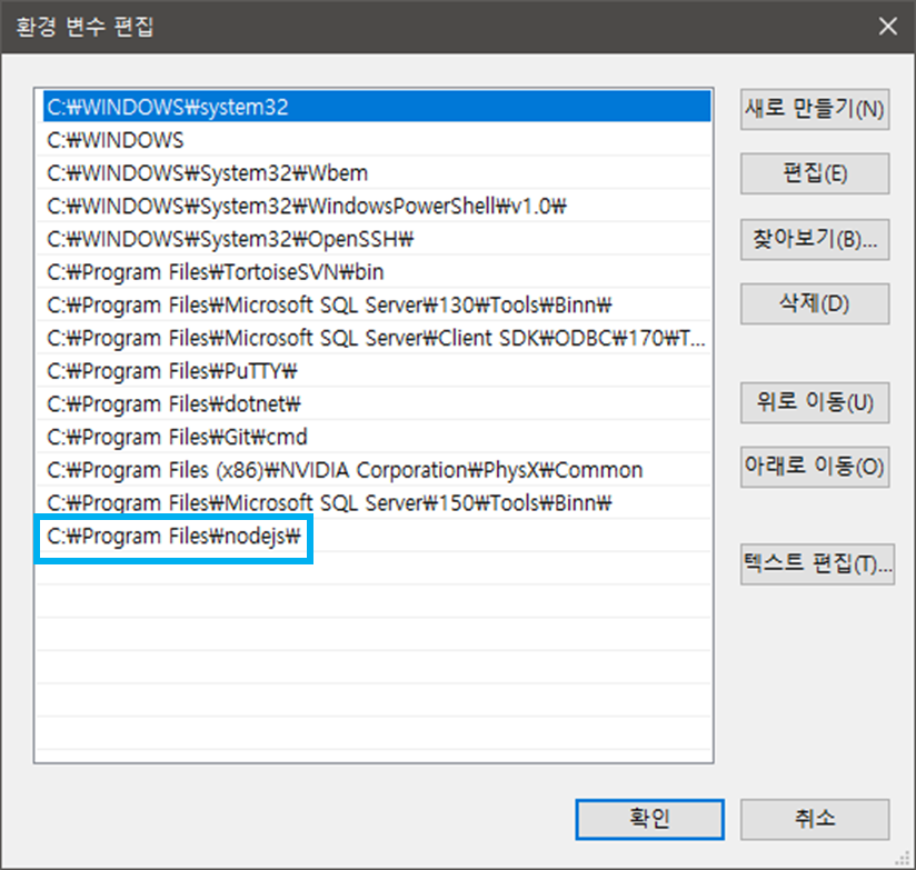대충 npm을 맞게 설치 했다면, npm이 설치된 폴더가 아닌 다른 위치에서도 사용할 수 있도록해주는 걸
