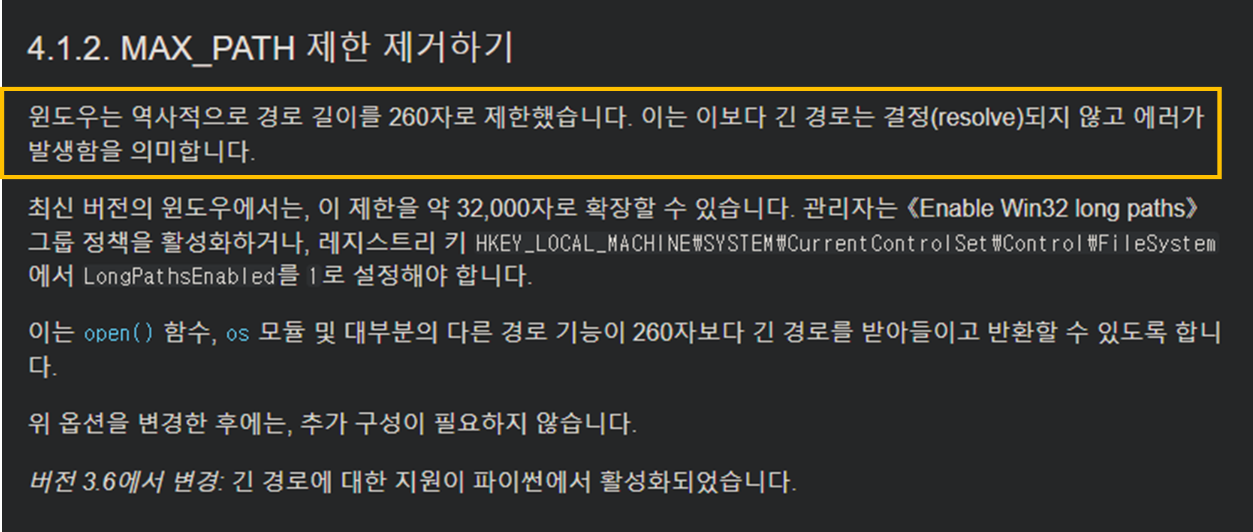 Disable path length limit 는 처음보는 문구라서 찾아봤더니