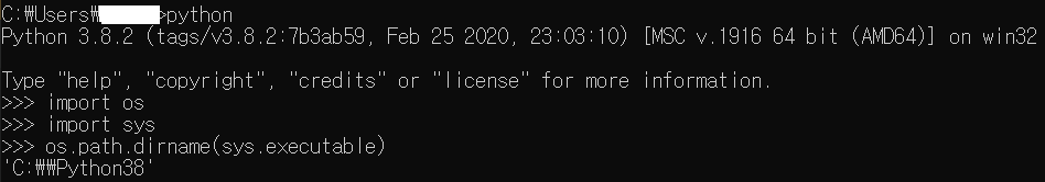 2) python 인터프리터에서 설치 경로를 확인하는 법